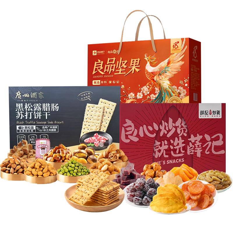 良品铺子/薛记/广州酒家 坚果零食果干黑松露腊肠苏打饼干