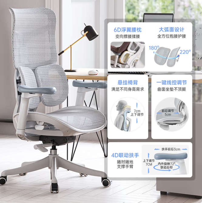 西昊S100 人体工学椅电脑椅办公椅电竞学习椅老板椅人工力学座椅久坐 S100云白+4D扶手
