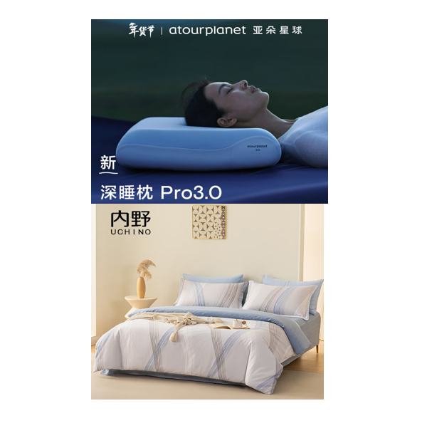 亚朵星球深睡枕Pro3.0 海绵记忆枕成人10cm护颈椎枕头助眠枕芯新年礼物*2+内野株式会社清风雅韵床品四件套