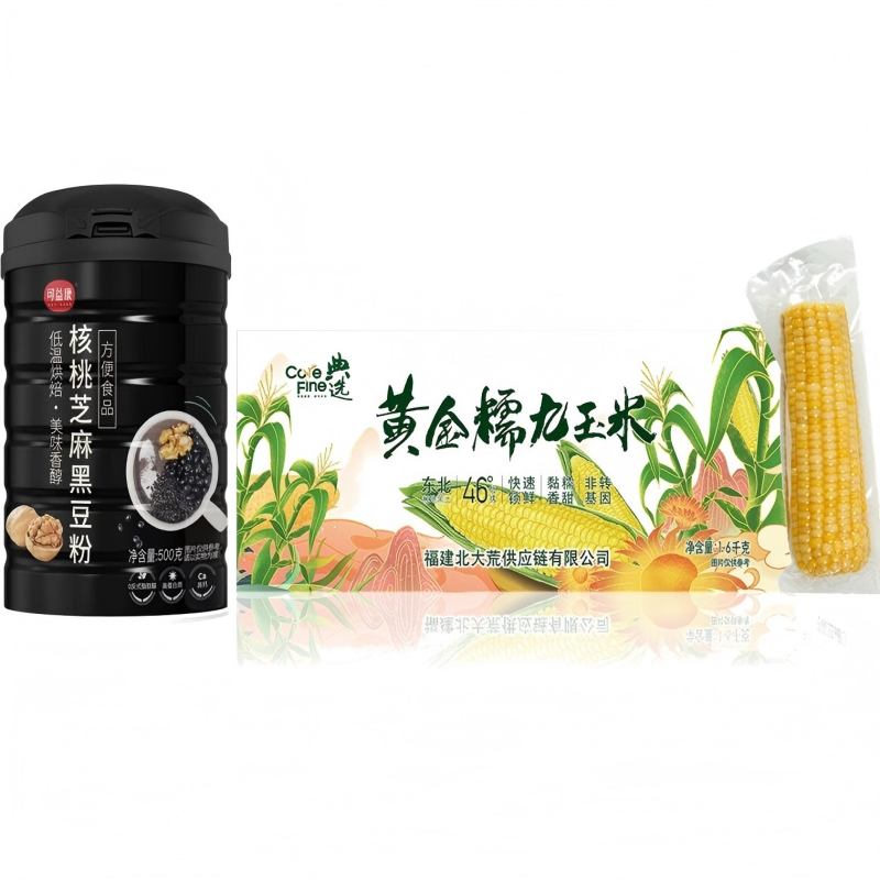 活动参与奖 套餐二十五:北大荒·典选黄金糯九玉米礼盒+可益康核桃芝麻黑豆粉