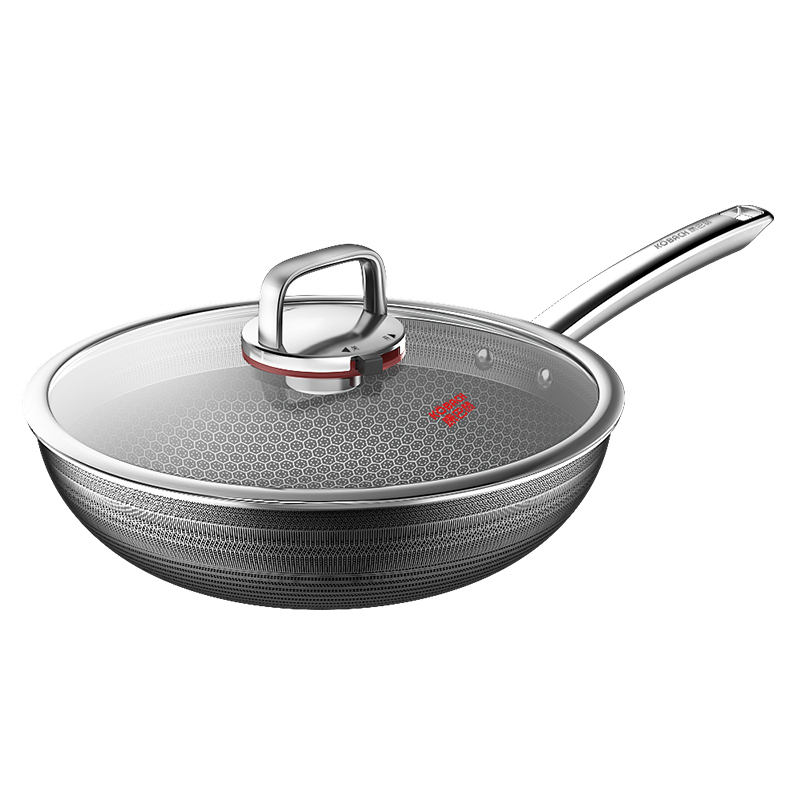 【康巴赫】六代炒锅不粘锅抗菌不锈钢炒菜锅32cm双蜂窝平底锅红点电磁炉通用