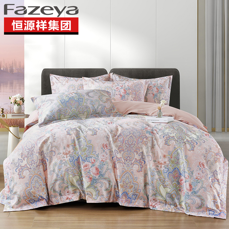 恒源祥集团彩羊家纺棉上绮印数码印花四件套维多利亚 桔