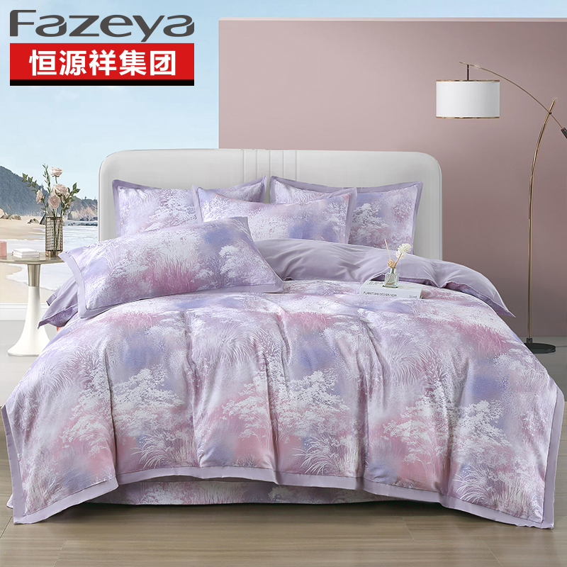 恒源祥集团彩羊家纺全棉数码磨毛四件套时光煮雨 紫