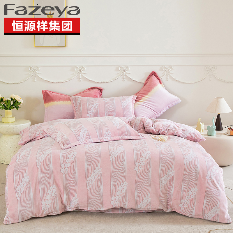 恒源祥集团彩羊家纺牛奶绒印花四件套旋律(粉)