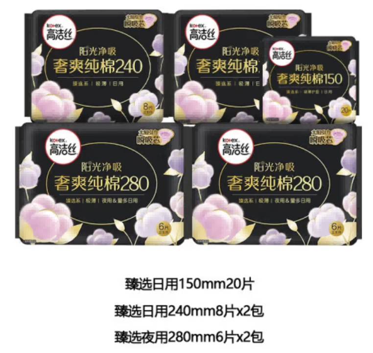 高洁丝(Kotex)卫生巾姨妈巾女日夜用组合装奢爽阳光纯棉臻选日夜组合(共48片)