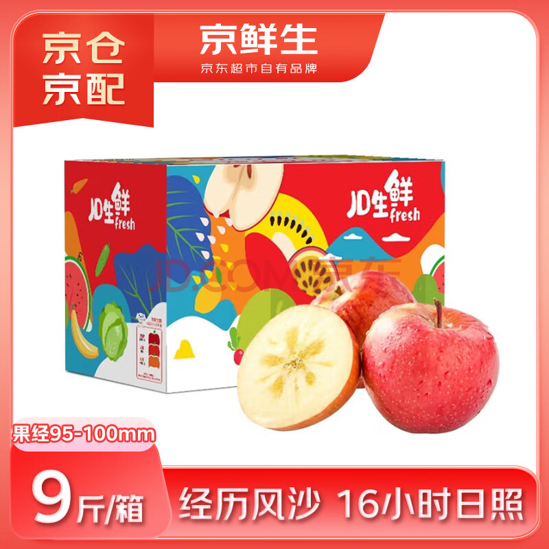 京鲜生 新疆阿克苏苹果 净重9斤 巨无霸95-100mm 新鲜水果
