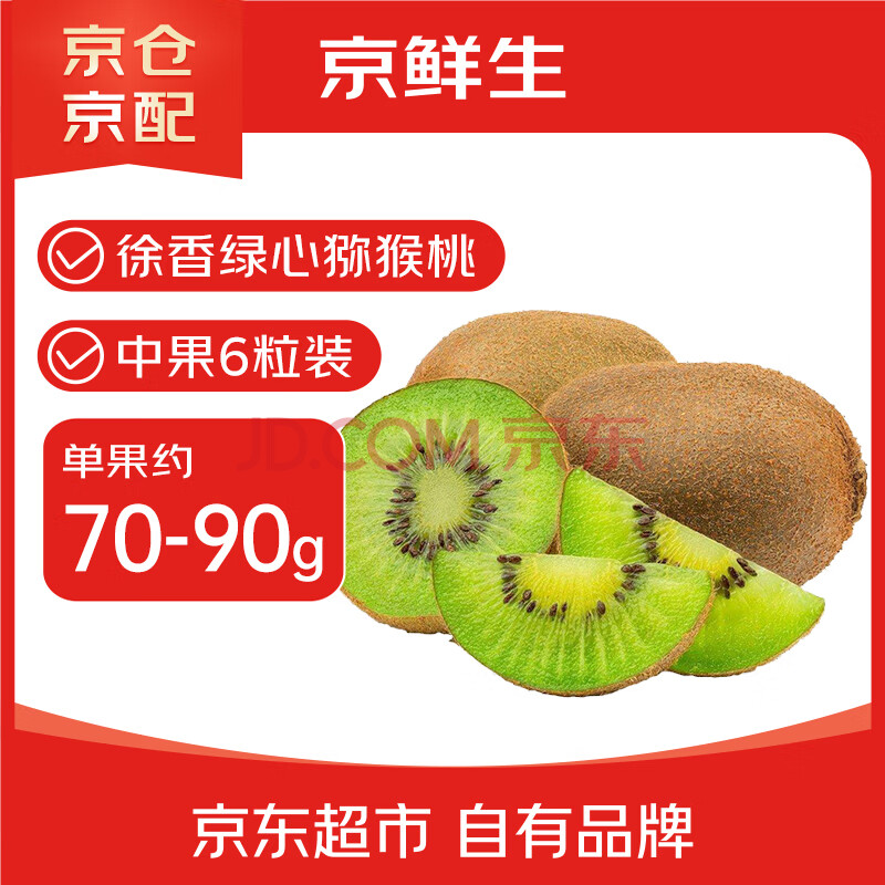 京鲜生 陕西徐香 绿心猕猴桃/奇异果 6粒 单果约70-90g 新鲜水果