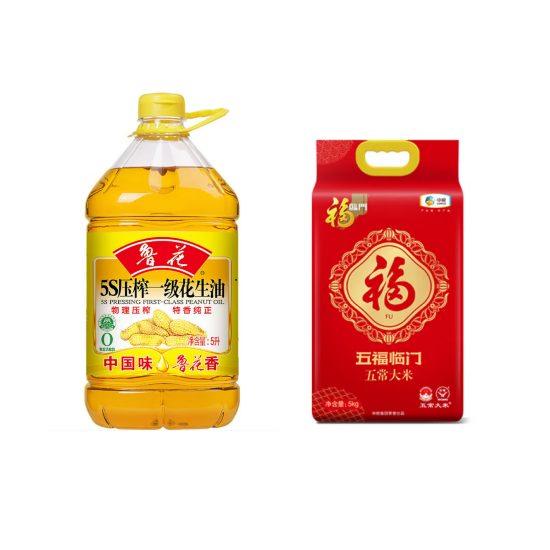 鲁花5S压榨一级花生油5L+福临门五福临门五常大米5KG