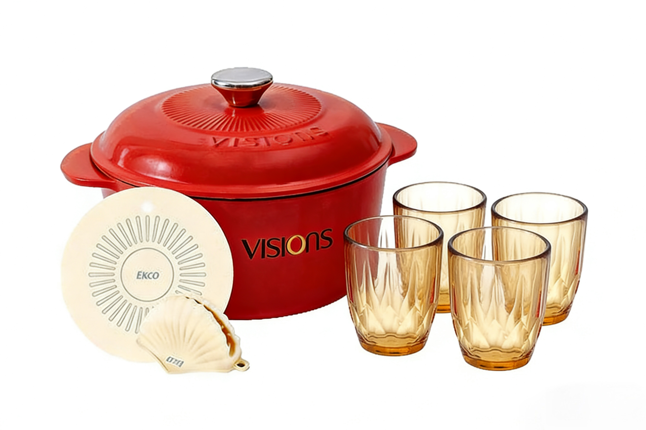 [乐品上海]红色铸铁珐琅锅3.4L+钻石杯四件组