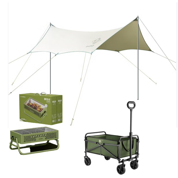 欧锐铂 露营者-户外烧烤炉ORB-1185 +大迈户外 DM-2008A 便携折叠推车+大迈户外 DM-1019 星际飞越蝶形天幕