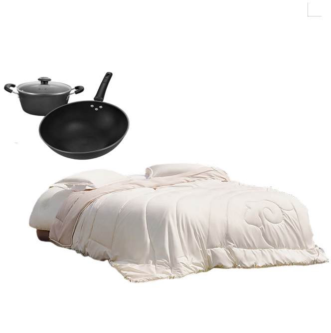 水星家纺 100%澳洲羊毛·原牧抗菌被+张小泉 精铁雪波纹锅具二件套C35422000