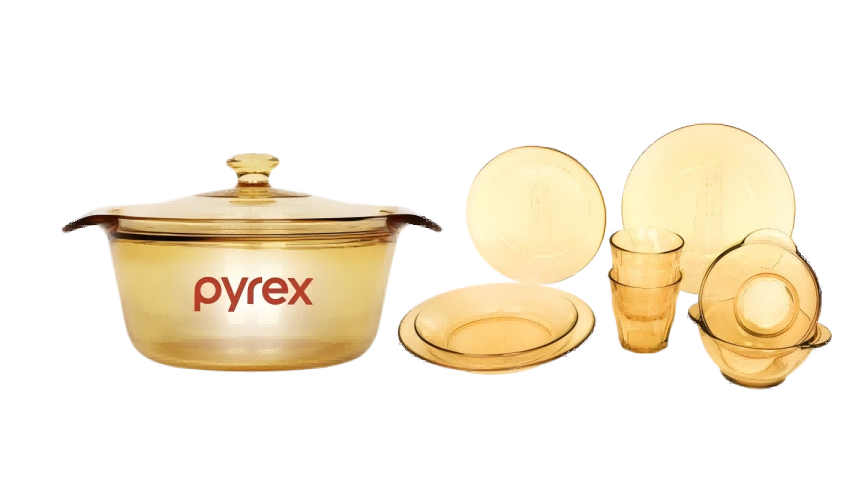 康宁Corelle Brands pyrex百丽透明锅1.6L+康宁(VISIONS)Corelle Brands Pyrex餐具Shiny晶耀系列玻璃餐具 8a件组 8件套