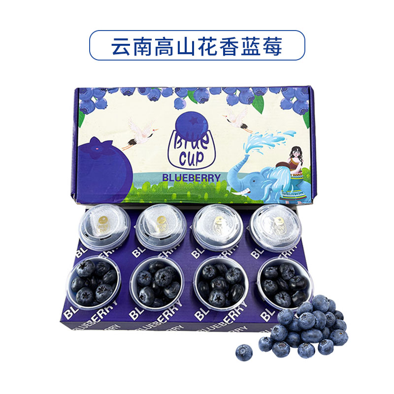 云南高山花香蓝莓精美礼盒装(大颗粒20mm+,60g/杯*8)