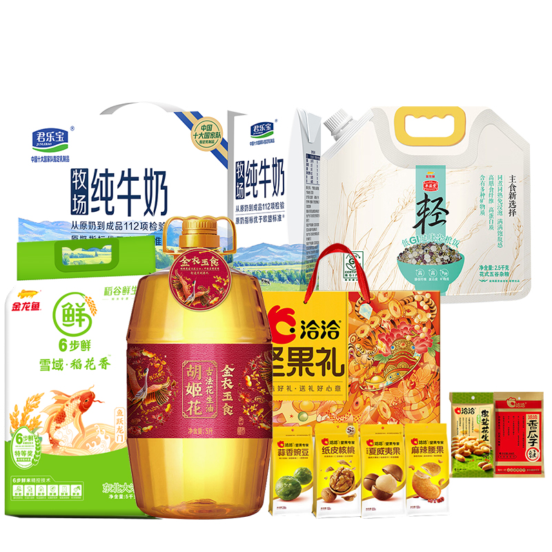 胡姬花/金龙鱼/洽洽/君乐宝 油米坚果牛奶杂粮饭组合7L+8.596kg
