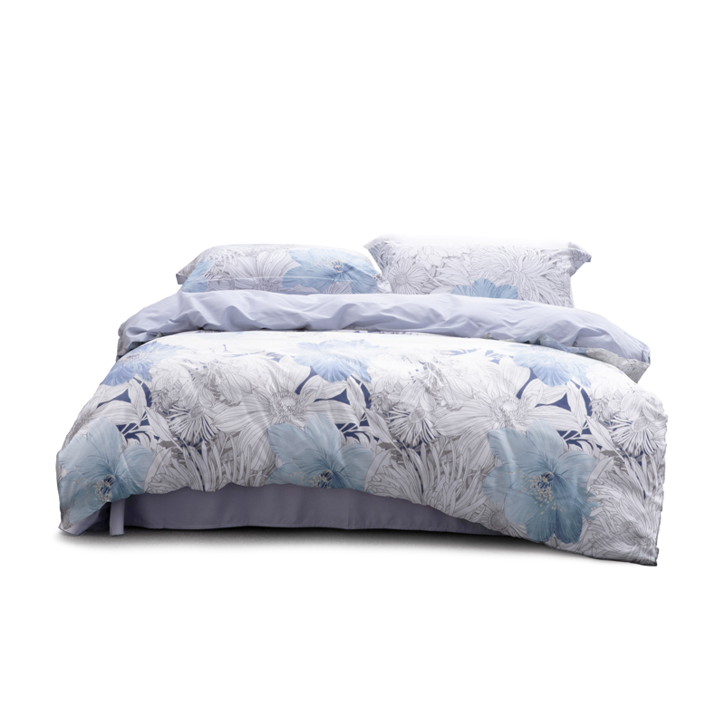 水星家纺水墨蓝花长绒棉抗菌四件套